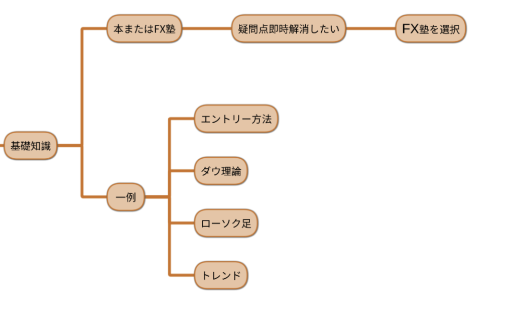 FX初心者として学ぶのにFX塾に入りましたが、そこで基礎を学び、その後検証にシフトしました。基礎はエントリー方法、ダウ理論、ローソク足、プライスアクション、トレードで活用機会の多いインジケータを主に学びました。